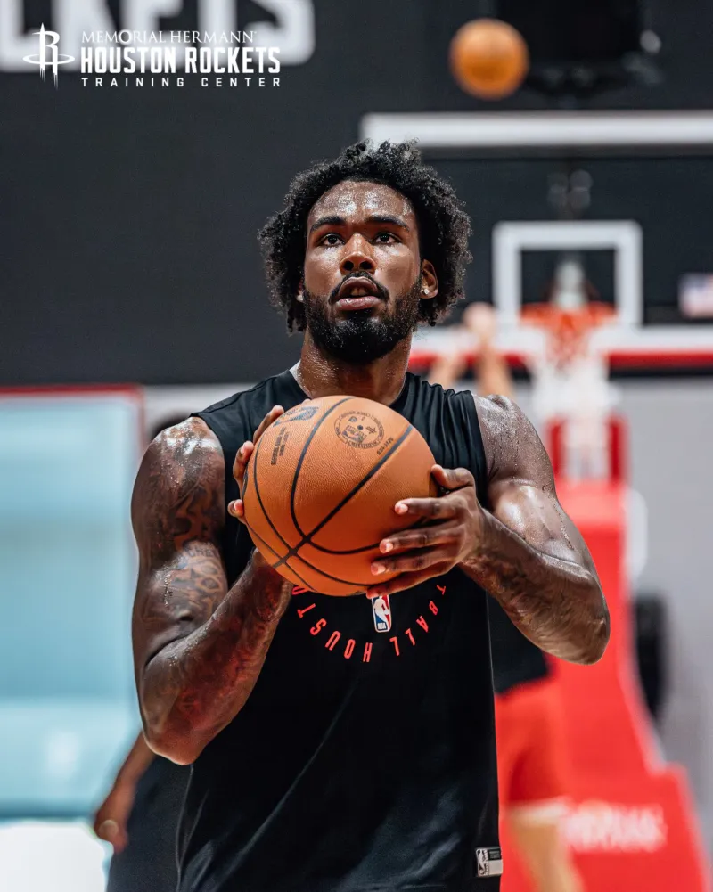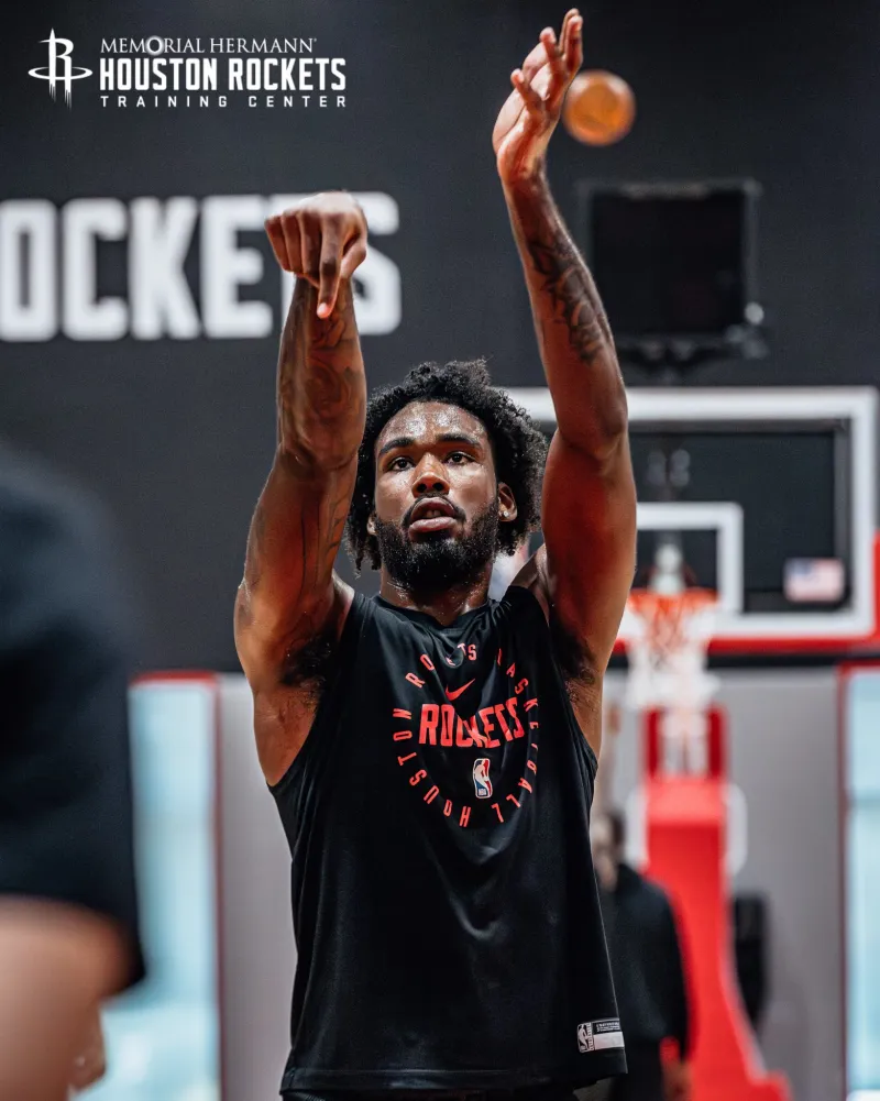 今日,火箭社媒晒出塔里-伊森现身火箭训练馆的训练组图,并配文: